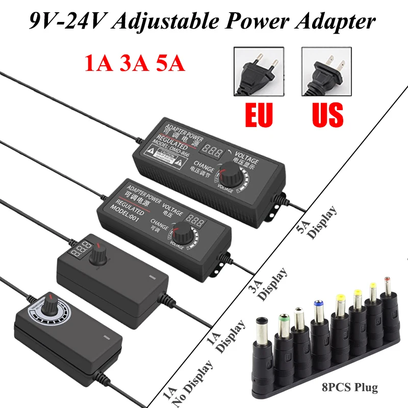 – Tension Réglable avec Précision : Un sélecteur rotatif vous permet d’ajuster la tension de sortie de 9V, 12V, 15V, 19V à 24V DC. Une flexibilité totale pour s’adapter à la majorité de vos périphériques basse tension.