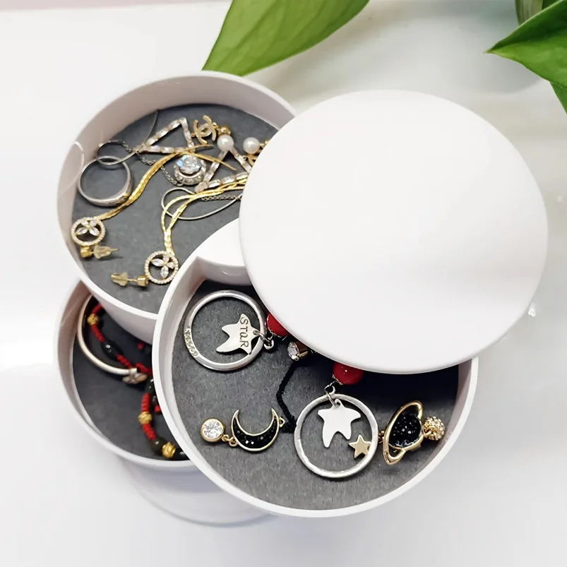quantité de Boîte de rangement de bureau multicouche rotative, accessoires pour cheveux, boîte de maquillage pour bijoux avec couvercle, boîte à bijoux anti-poussière, boîte de rangement pour bijoux