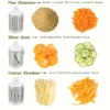 • 3 tambours en acier inoxydable (râpe fine, râpe grossière, trancheuse)