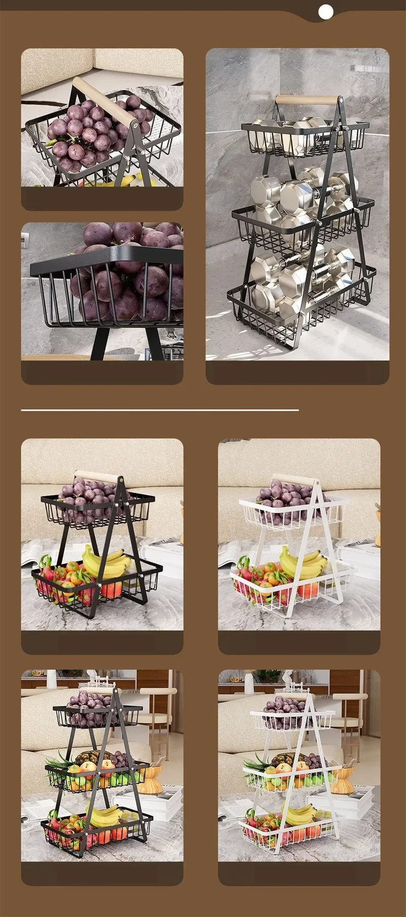 Support de rangement de cuisine en fer portable amélioré, panier de fruits multifonctionnel, support de stockage de collations multicouche, revêtement antirouille, 2025